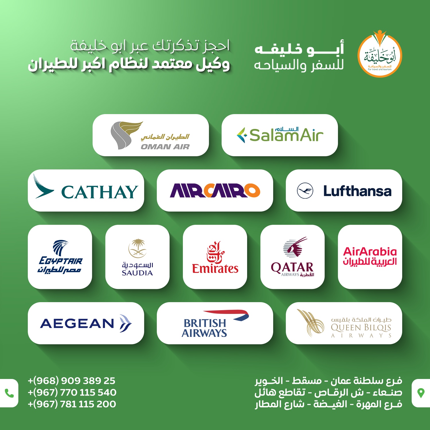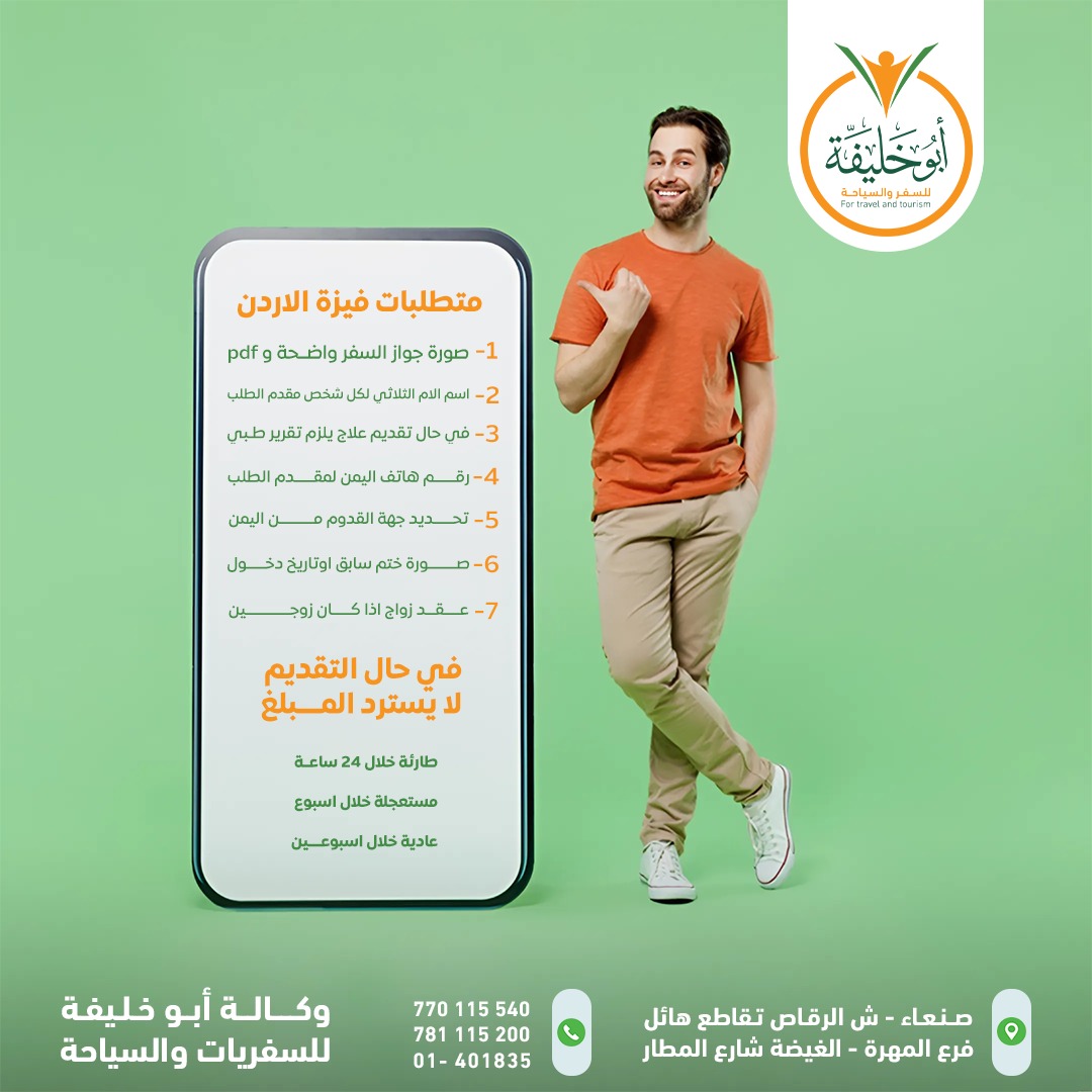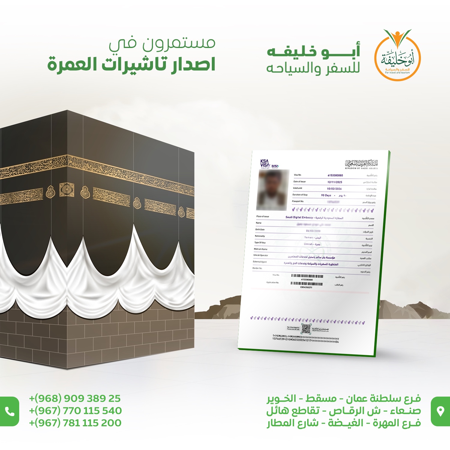 في أبو خليفة العالمية للسفر والسياحة نقدم مجموعة متكاملة من خدمات التأشيرات والسفر، للأفراد والشركات، مع متابعة دقيقة والتزام بالأنظمة الرسمية.